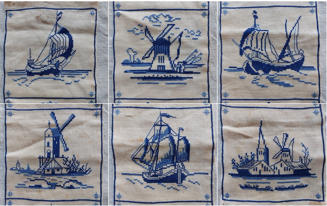 Op de foto legde ik nog een schellekoord met weer zes andere geborduurde tegels.