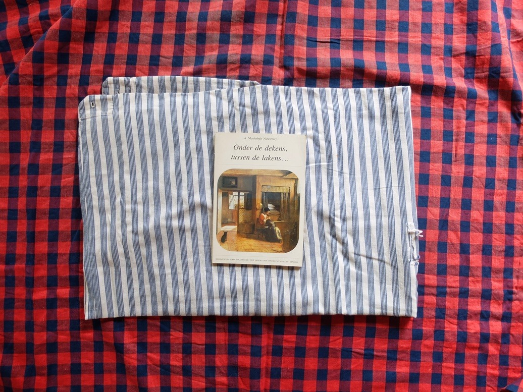 En als je echt àlles wilt weten over hoe dat vroeger ging, dan is het boek “Onder de dekens, tussen de lakens” een aanrader. Het boek wat ik op de foto laat zien is een bijzonder exemplaar: het is gesigneerd door de schrijfster, mw. Meulenbelt. Een autoriteit op het gebied van oud Nederlands textiel. Maar reacties van ervaringsdeskundigen, die vroeger nog hebben meegemaakt hoe dat ging met dat beddegoed, die zijn ook heel leuk om te lezen!