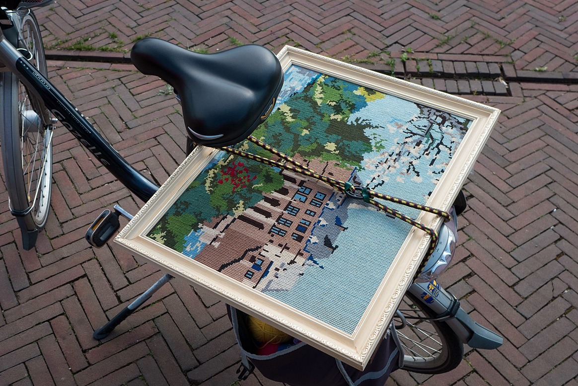 Dit mooie tapisserie-schilderij kocht ik op de vrijmarkt op koningsdag, en wordt nu door mij verwerkt tot iets anders. Het liefst zou ik daar vandaag mee verder gaan, en ook de de lapjes willen gebruiken die ik gister van een vriendin kreeg waarmee ik iets kan afmaken. Maar eerst moet de fiets (met mij) vandaag nog weer ergens anders naartoe. In progress!