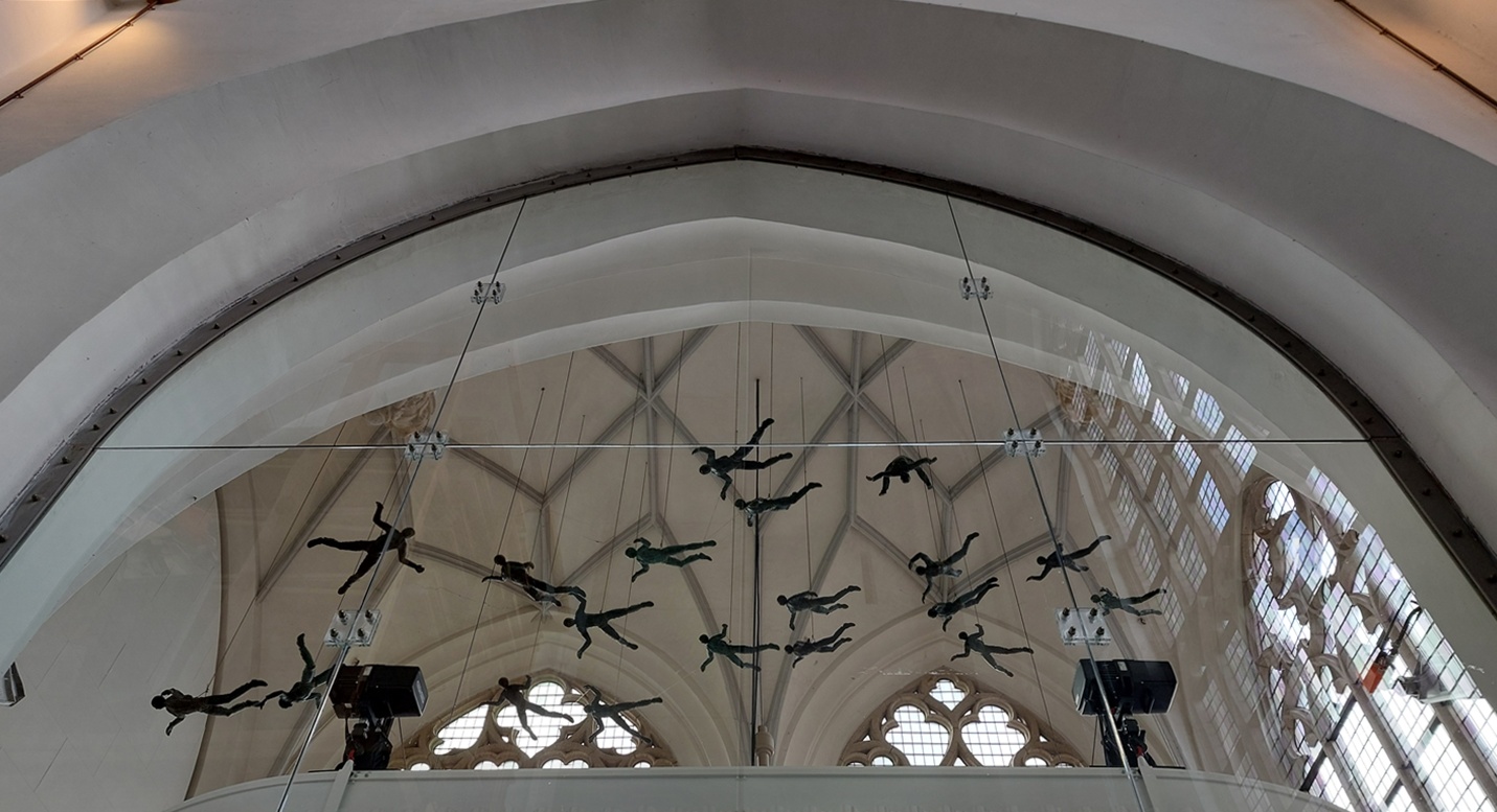 We waren al in die indrukwekkende kerk geweest. En hadden ook omhoog gekeken. De herinnering aan de Tweede Wereldoorlog is nooit ver weg in Arnhem.