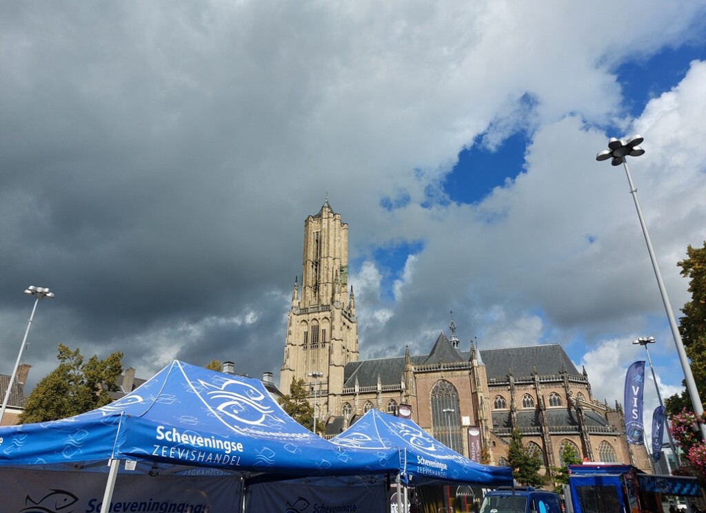 We liepen onder die poort nadat we eerst even een visje hadden gescoord op de markt. Tijdens het wachten op het bakken daarvan draaide ik me om en zag hoe de glorieus gerestaureerde Eusebiuskerk het contrast tussen tent en ’tempel’ nog eens goed benadrukt: dit beeldbepalende gebouw staat als een rots en een icoon! Markant voor miljoenen die houden van ‘hun’ erfgoed. En op een dag als vandaag: รฒns erfgoed!