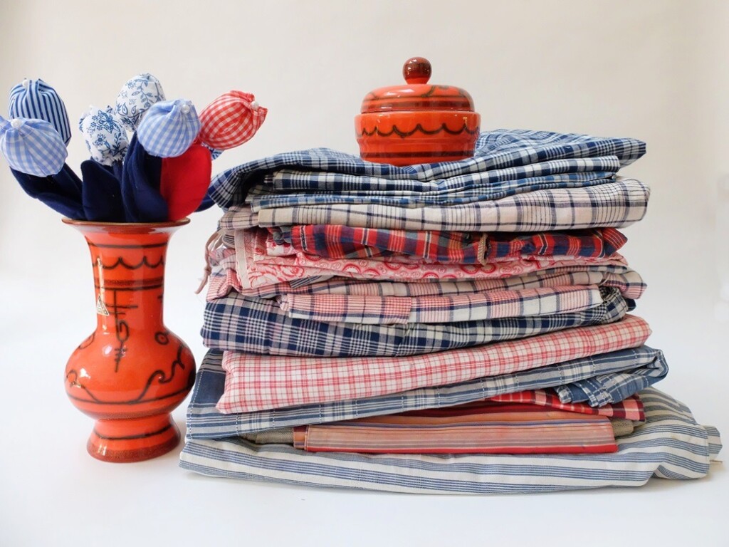 De stapel oud beddegoed is opgehaald door een quiltster die ook cursussen geeft en op zoek was naar oude Hollandse stoffen. Nu zijn we allebei blij: zij met heel veel stof (die ze in quilts gaat verwerken), en ik omdat ik nu weet dat deze stoffen zo bijzonder goed tot hun recht gaan komen. Ik vroeg of ze me een foto wilde sturen als ze iets klaar heeft, en daar verheug ik me al op. Ik vond het leuk om deze mooie oude stoffen een tijdje in huis te hebben en ik hoopte dat ze goed terecht zouden komen en ik vind het heel leuk dat dat nu gelukt is!