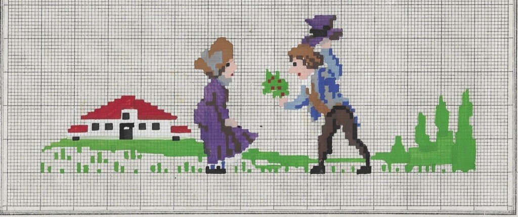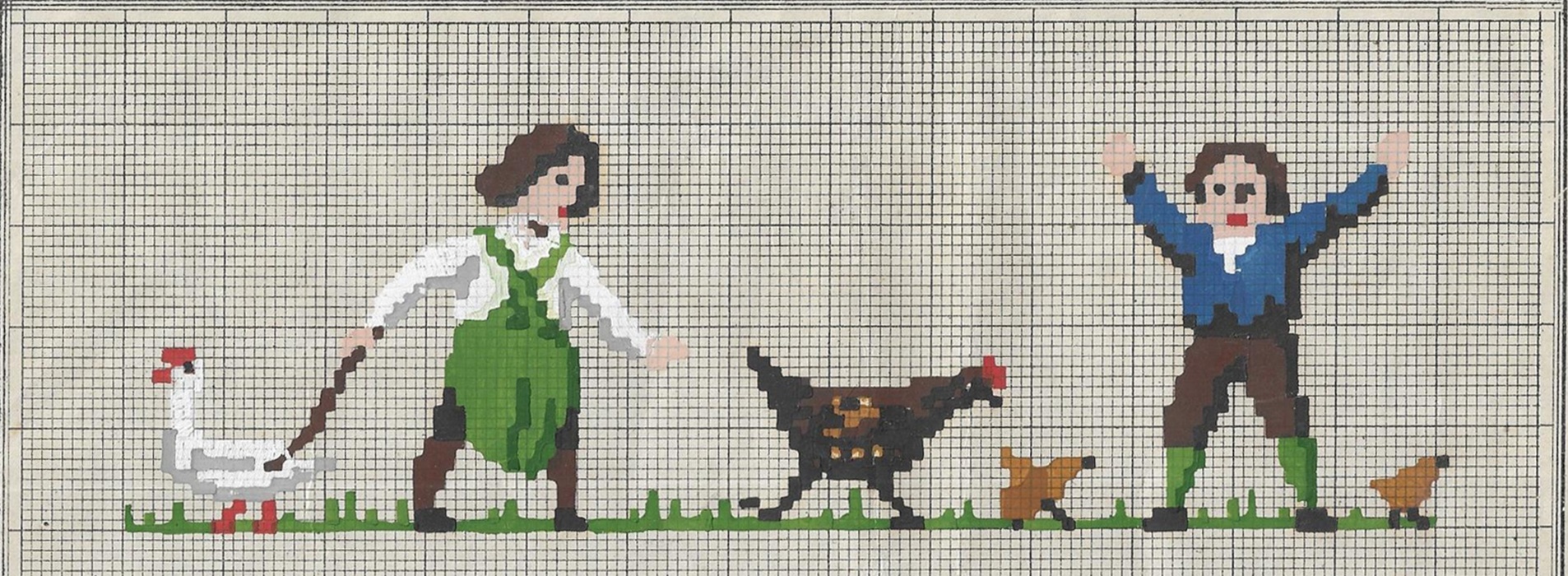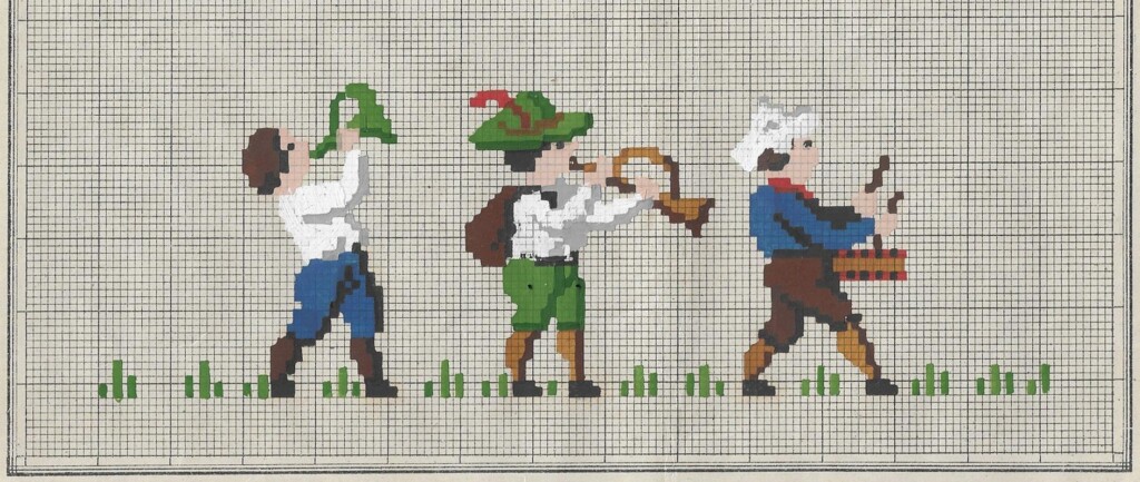 Op oude borduurpatronen zijn tafereeltjes te zien van hoe het leven vroeger was.