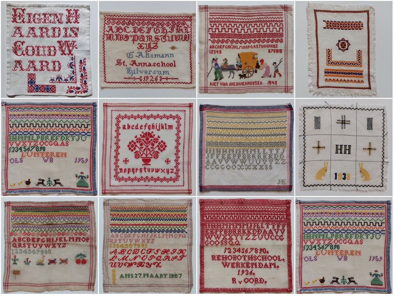 Sommige met naam, sommige met jaartal, sommige met plaatsnaam, sommige met mooie randjes, sommige met mooie figuurtjes.