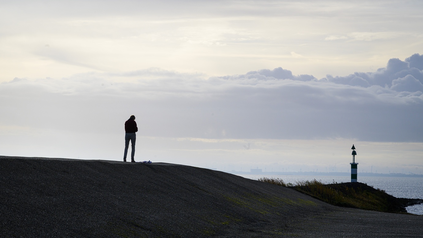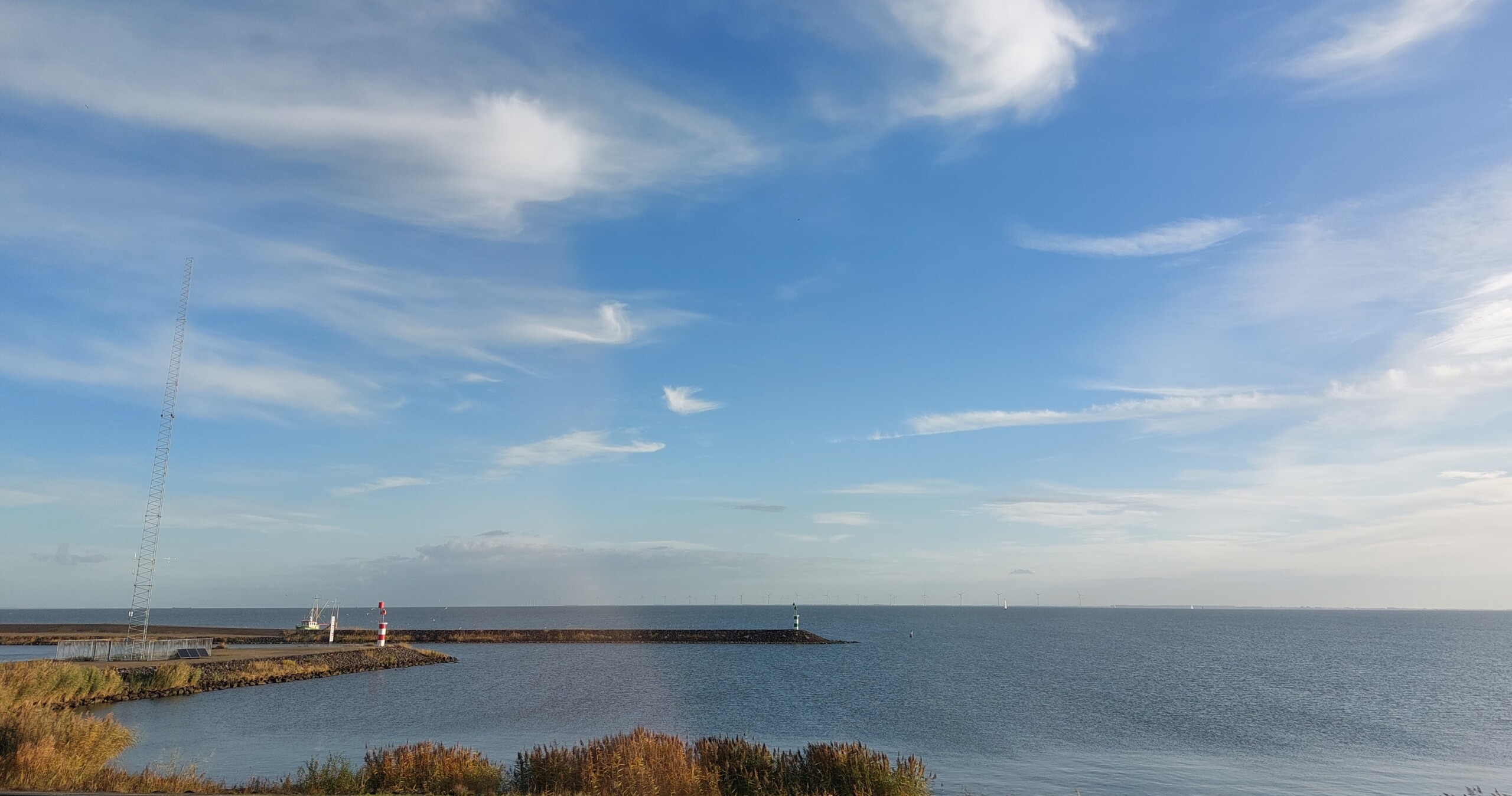 Halverwege de dijk is een kleine Trintelhaven en daar parkeerden we even. Precies op dat puntje wilde ik staan en de weidsheid van het water ervaren.