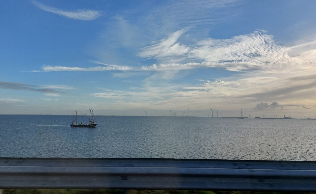 Op één week na is dat precies veertig jaar geleden! Met die verhuisauto in onstuimig weer over die lange dijk. Daarna zijn we nog tientallen keren over die dijk gereden en heel vaak was het koud, guur, mistig en stormachtig. Maar ook soms stralend en overweldigend mooi. Nu troffen we het met prachtig weer!