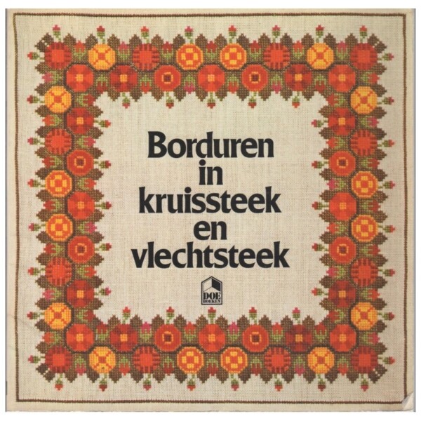 Aan de hand van stekentekeningen wordt u het verschil tussen de kruissteek en de vlechtsteek uitgelegd.” (overgenomen van de achterkant)