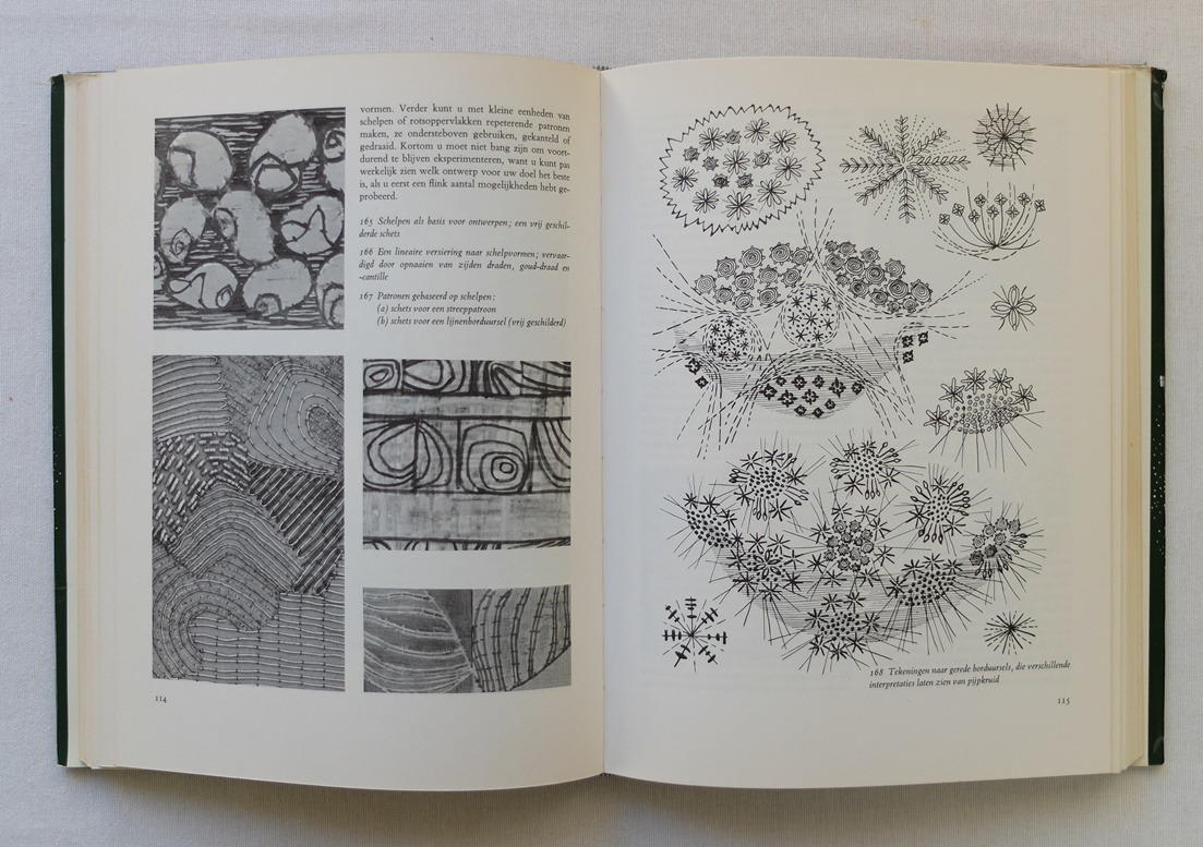 Ook meer gespecialiseerde technieken op het gebied van ontwerpen als versiering van kleding, linnengoed en de invloed van naaldwerk op de binnenhuisarchitektuur komen aan bod.” (overgenomen van de achterkant van het boek)