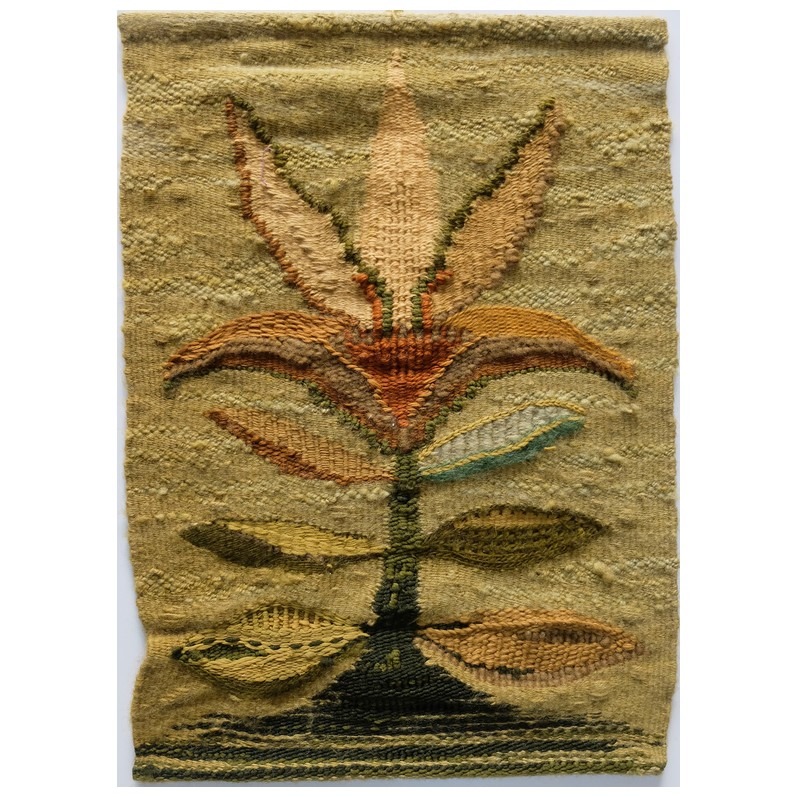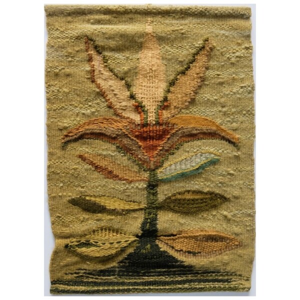 37 x 52 cm. Handgeweven. Heel mooi van kleur en vorm. Een bijzonder wandkleedje