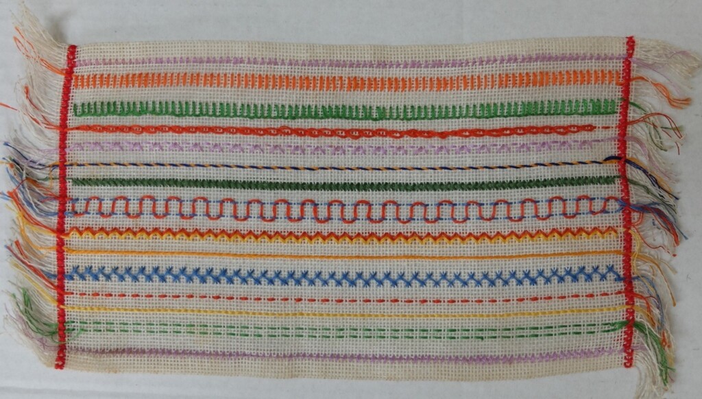 Uit een stapeltje proeflapjes viste ik het lapje waar ik zelf een zwak voor heb: een oefenlapje met borduursteken.