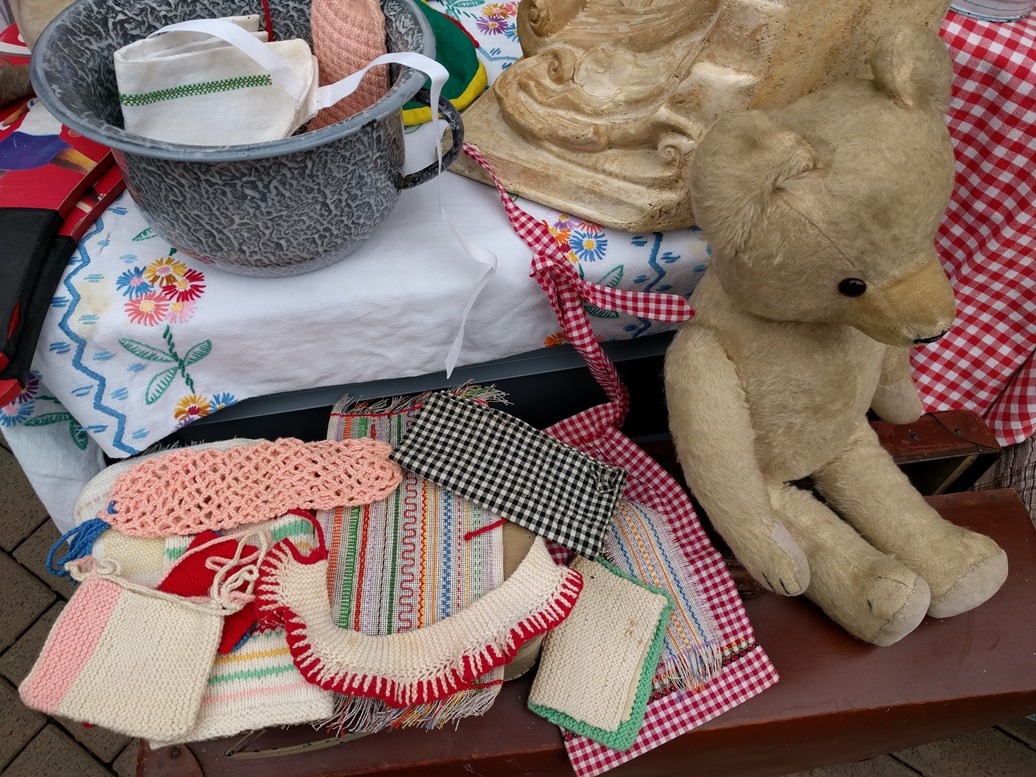 Eigenlijk wel jammer dat het setje nu niet meer compleet is. Wat zal een meisje hier vroeger haar best op hebben gedaan.