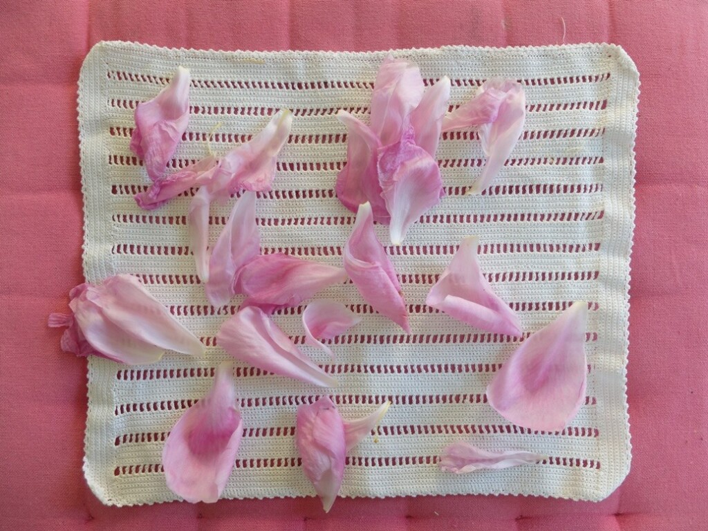 Ook op oude Hollandse slopen bedrukte roze roosjes. Het linker sloop met roze bloemetjes plaats ik in m’n shop. Deze oude stof van dekbedden of slopen is nu weer heel geliefd onder quilters, die de stof gebruiken in “Hollands erfgoed”-quilts.