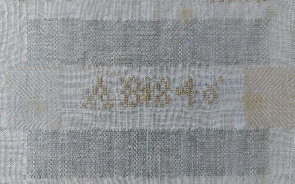 In 1846 voltooide een meisje met de initialen AB haar stoplap. Met lichtblauwe zijden garen had ze acht kruisstoppen en vier doorstoppen gemaakt.