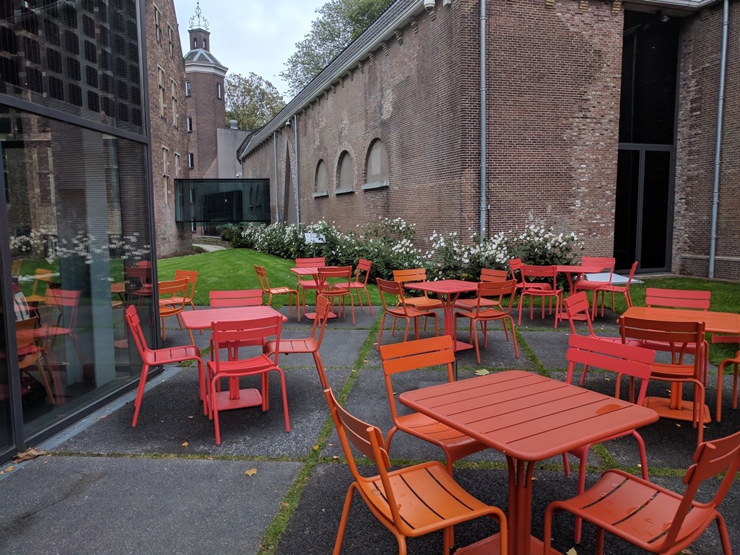 Ik had een hele leuke tas mee, en die vergat ik te fotograferen op deze oranje stoeltjes. Toen in een volgend museum maar even op de grond gelegd.