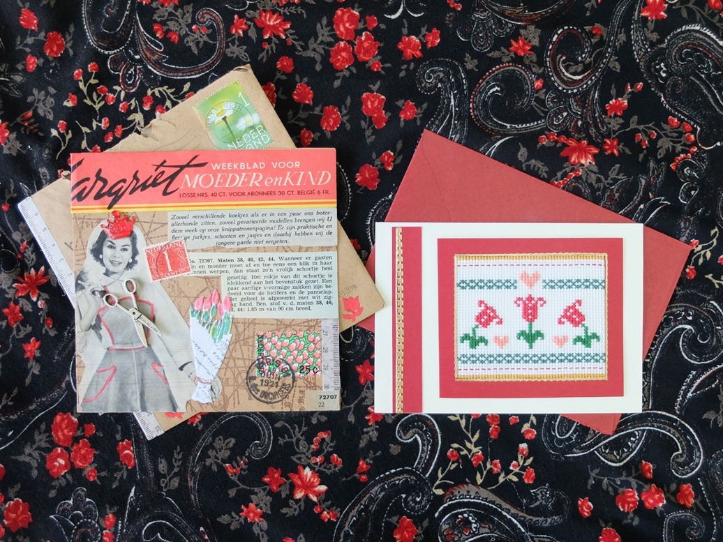 De rechterkaart is van Maria, en ik vind haar geborduurde tulpjes schattig.