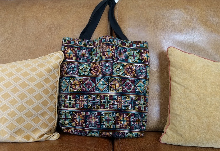 Een tas is net als een mens: hij kan zich aanpassen aan de omgeving. Dat ‘ontdekte’ ik vandaag. Ik had een bijzondere dag, want ik ging nog eens naar het dorp waar ik tot vorig jaar zo vaak en zo graag kwam. Eerst met de auto naar m’n zus, die daar nog in het dorp woont. Ik ging een beetje eerder dan we hadden afgesproken. “Mag ik je fiets lenen?” vroeg ik, “dan zie je me straks wel weer.” Ik wilde graag nog een keer door de bekende straten fietsen. Ik had de bestellingen die vandaag op de post moesten meegenomen en vond het leuk om die op de fiets naar het plaatselijke postagentschap te brengen. Precies voor de ingang van de winkel kwam ik de oude buurvrouw tegen. Ze was verrast om mij daar te zien en zei gelijk: “Ik heb nèt vanmorgen aan je gedacht!” Ik zei: “Zal ik bij u een kopje koffie komen drinken? Dan ben ik over een kwartiertje bij u.” En zo zat ik vanmorgen bij de oude buurvrouw op de bank en keek naar het huis ernaast. Dat huis was tientallen jaren ons ouderlijk huis geweest, en nu niet meer. Het was mooi om zo nog wat te kunnen napraten over die lange periode dat zij en mijn moeder buurvrouwen waren. En ik vond het frappant dat ik precies bij haar koffie kon drinken op een dag dat zij net aan mij denkt. We zijn elkaar nog niet vergeten! Deze oudere mevrouw is vroeger handwerkjuf geweest en natuurlijk maakte ze een opmerking over mijn Thaise Tas, die ik naast me op de bank had gezet.