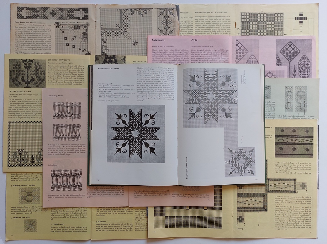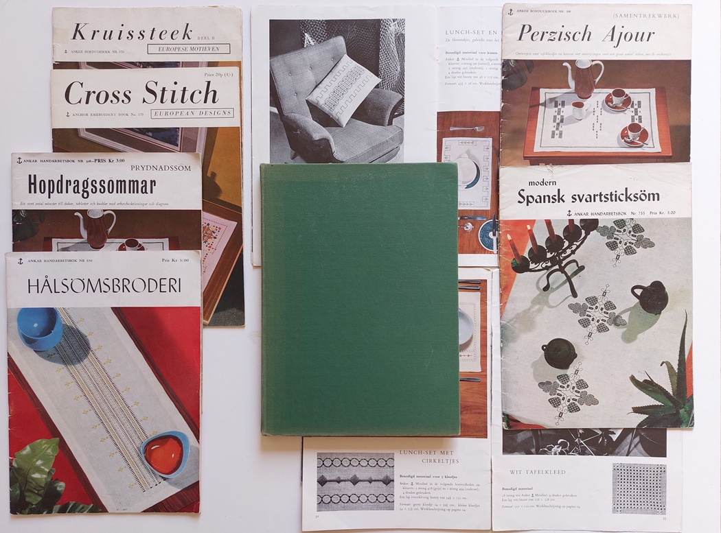 Van uitgever Anker/Ankor/Anchor wisten we al wel dat ze losse boekjes uitgaven over specifiek borduurwerk uit een bepaalde streek. Er zijn bijvoorbeeld delen over Assisi en Zwartborduren en daarbij maakt het niet zoveel uit in welke taal het is gepubliceerd. Nieuwe borduursters die deze technieken ontdekken, kunnen ook wel overweg met een Zweedse of Spaanse uitgave. In een vorig blogje plaatste ik ook boekjes over Halsomsbroderi en Hopdragssommar, en dat zijn steken die nu ook weer interessant zijn, grenzend aan de hernieuwde interesse voor Open zomen. Een aantal van deze boekjes die ik nu in voorraad heb, legde ik bij elkaar voor de foto.