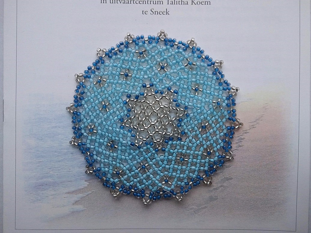 Een mooi kralenwerkje ligt hier ook nog naast me. Die had ik klaarliggen voor wat kralen-boeken straks. Zo is het ook wel mooi.