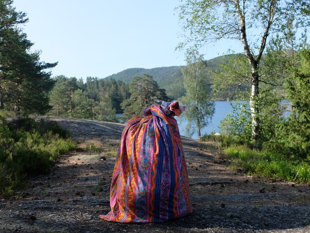 Vijf en twintig jaar geleden dus. Ik had een hele stapel restanten mooie gordijnstoffen gekregen en daar wilde ik iets mee doen. Ik besloot er hele grote zakken van te maken, met een handig koordje door een tunnel, zodat je hem makkelijk dicht kunt trekken. Hele middagen was ik aan het naaien en de zakken gaf ik weg. Ik hield er ook nog een aantal voor mezelf en die gebruik ik nog steeds. Ze zijn echt ideaal! Om een stapel kussens in op te bergen, om dekbedden in te bewaren, of om mee te nemen op vakantie. Afgelopen zomer had ik zo’n zak mee in onze Daktent en daar ging elke ochtend het dekbed in. En elke avond kwam het er weer uit, nadat we de tent weer ergens anders hadden uitgeklapt. Het is fijn als je dekbed dan niet op de grond hoeft te liggen, en ook als hetย tijdens de rit netjes opgeborgen is in die zak.