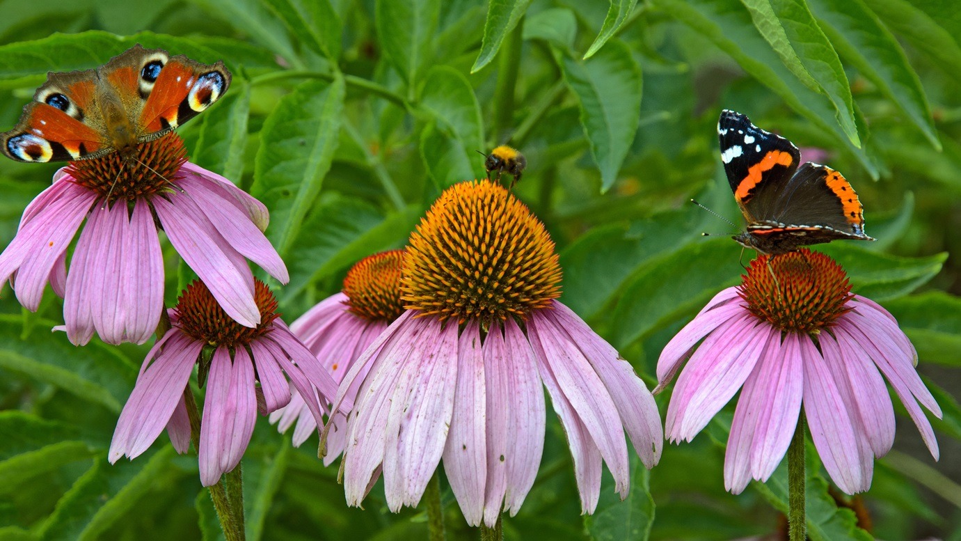 Maar de vlinders op de Echinacea zijn nieuw! Nou ja, als ze er nu nog zijn dan. Misschien zijn ze alweer weggefladderd. En dat ga ik nu ook doen!