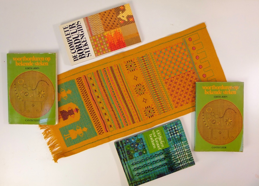Op de foto een stekenlap die uit ongeveer dezelfde tijd stamt als deze boekjes. Ik denk dat ik een verzameling ga maken van stekenlappen uit verschillende tijdperken en dit is een leuke uit de zeventies.