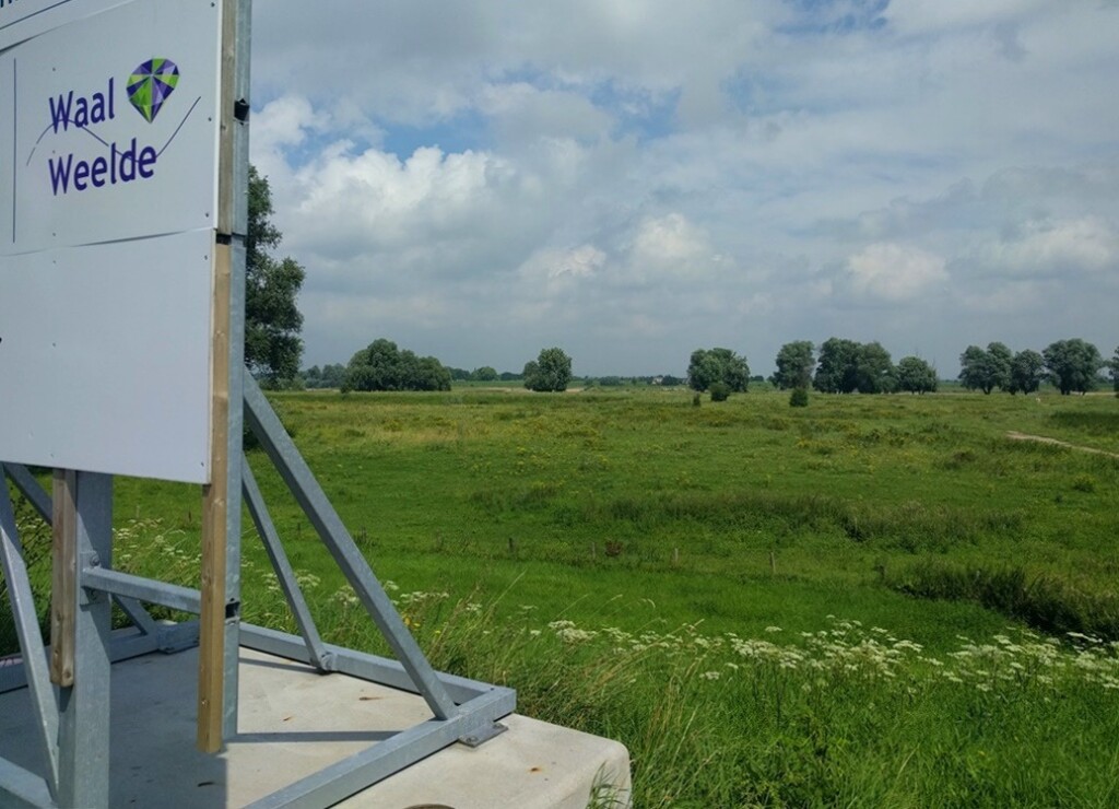 Na afloop ga ik dan (volgens vaste gewoonte) naar de Waal. Voor een portie Waal-weelde. Ik heb al vaak weelderige foto’s laten zien van mijn verpozingen langs de Waal, maar toch bedacht ik dit woord niet zelf. Het staat op een groot bord, wat daar is neergezet. Hè bah, ik hou niet van die grote borden! Gaan ze het hier nu ook al overhoop halen? Straks weer allemaal tractors en zandhappers en wie weet wat nog meer. Hoepel op met je borden!