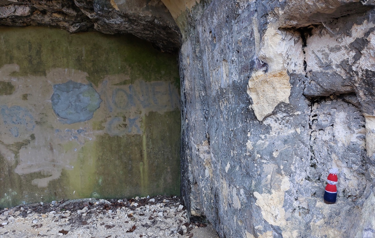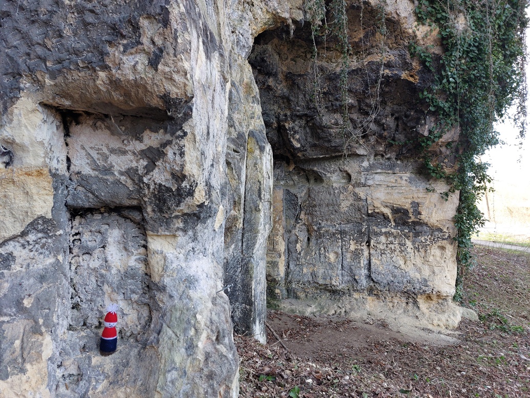 De parkeerplaats voor een wandeling op de Curfs Groeve was pal voor deze imposante formatie van mergelgesteente. Rugzak om en via een stijl pad omhoog.