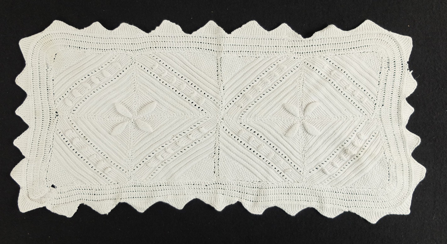 Een wit paard! Met een oud gebreid dekentje!