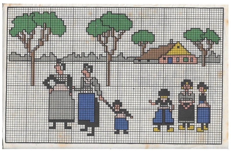 Vandaag de andere helft. In dit oude mapje zitten patronen van de toen ook al bekende streekdracht-plaatsen: Marken, Volendam, Zeeland, Spakenburg, en Nunspeet. Van elke plaats zijn twee patroontjes gemaakt. Nu dus de tweede reeks.